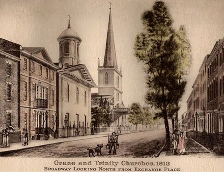 Grace Church has been an important part of the fabric of New York City for over two hundred years. The first worship service was held on Sunday, December 21, 1808 in a modest building at the corner of Broadway and Rector Street, some two miles south of where the church sits today. For a quarter century, the church flourished in its downtown location, engaging in important community outreach throughout Lower Manhattan, including the founding of a charity school for girls and another for boys in 1823.