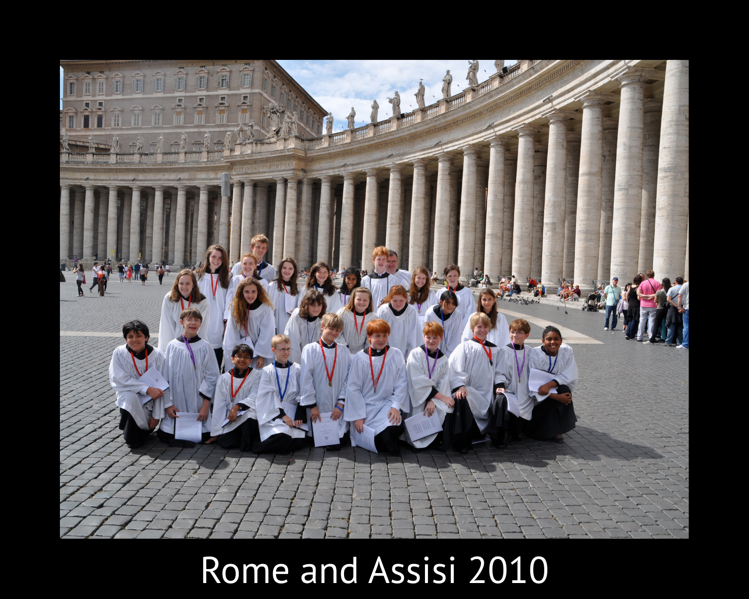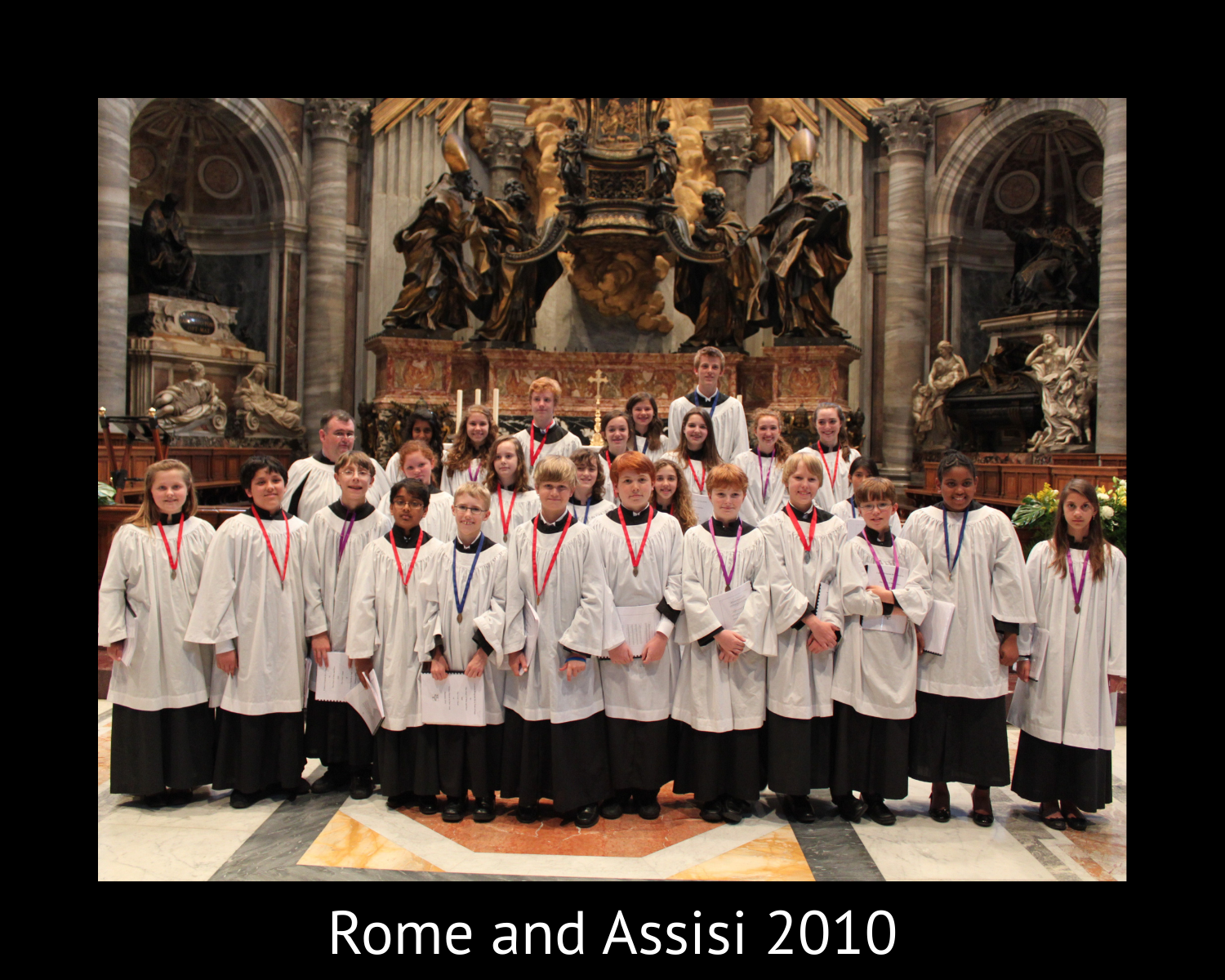 Choristers and their families find choir extremely rewarding. Choir offers the obvious advantages of rigorous musical training in a storied tradition of liturgical repertoire. Less apparent, though, choir also offers linguistic training in multiple languages, the mental and physical discipline of frequent performance, the team work and camaraderie of working with other choristers and the excitement of international travel. Finally, choir offers opportunities for developing leadership and self-reliance, enhancing self-esteem and expanding social skills. Often the lives of choristers’ families are also enriched as there are opportunities for family participation in many choir activities.